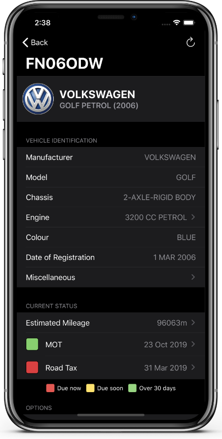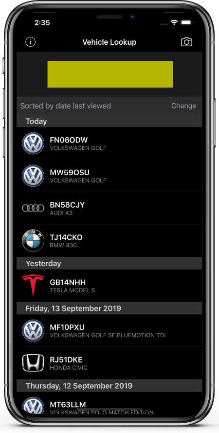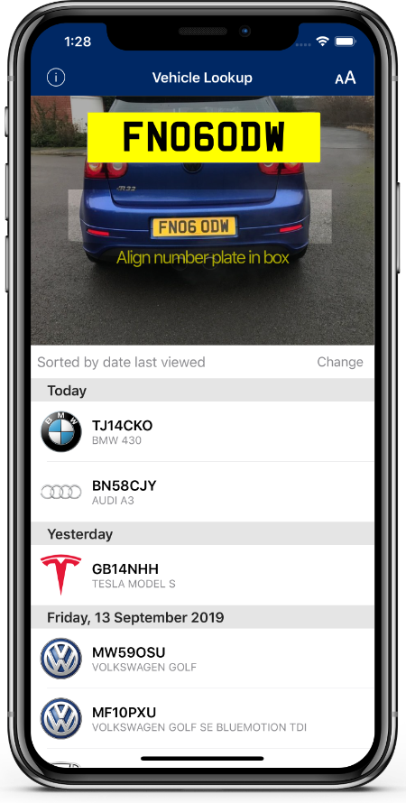Vehicle Lookup allows you to look up vehicle data and MOT history for all UK vehicles, by simply entering the vehicle registration mark, or pointing the camera.